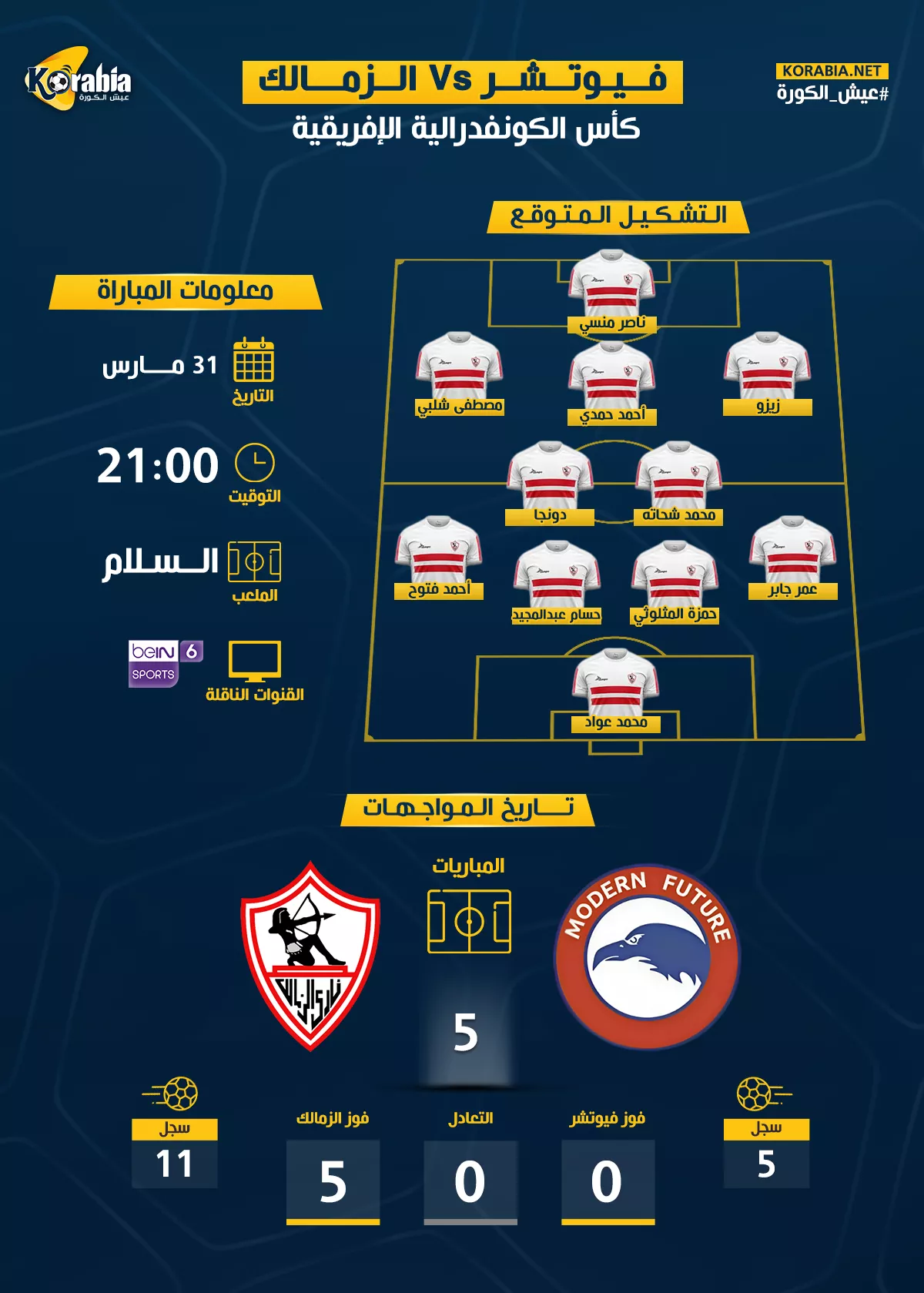 موعد مباراة الزمالك وفيوتشر اليوم في الكونفدرالية
